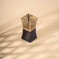 Drawing from the timeless elegance of Islamic architectural motifs, we tried to capture a refined interplay between structure and ornamentation with this mabkhara. Its body rises in a subtly tapered silhouette, transitioning from a solid lacquered base into a meticulously laser-cut brass canopy. The intricate arabesque pattern is there to lend a sense of airiness. It is a piece that balances grounded solidity with a delicate crown, evoking the harmony of old-world craftsmanship with a distinctly modern silhouette. Perfectly poised, it stands as a statement of cultural sophistication and structural grace.