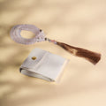 Our tasbih has withstood the test of time, being one of the initial elements that we worked on to create the perfect and complete experience for the Ramadan essentials. Our tasbihs are made of agate beads that carry their own subtle markings, formed over time by nature, chosen for their depth and uniformity. With a premeditated weight, it grounds the hand with each count. At its center, a custom-cut metal charm bears our emblem precisely laser-carved into solid sheet metal, giving the piece a quiet signature. The pouch it rests in is made of soft suede, chosen not just to protect, but to complete the experience.Â