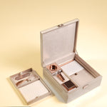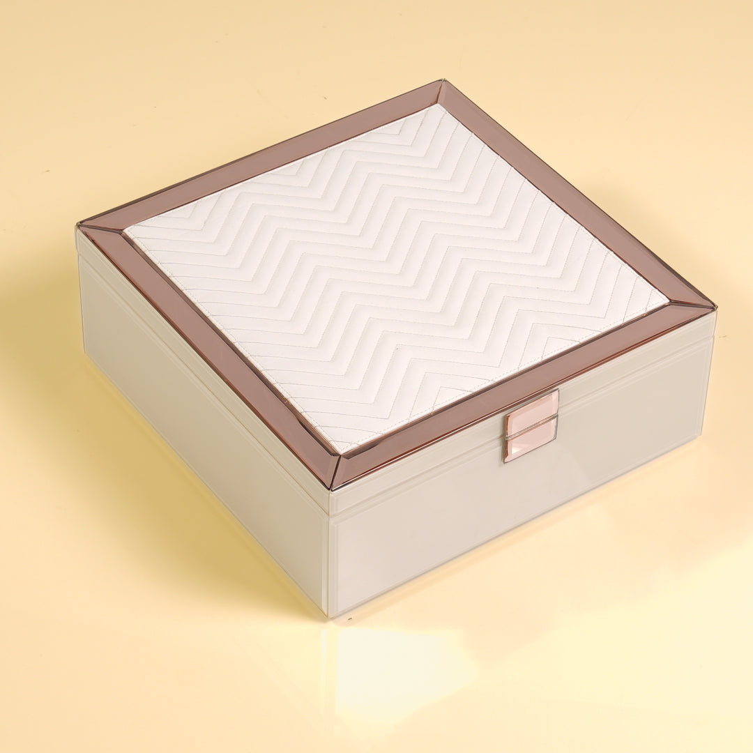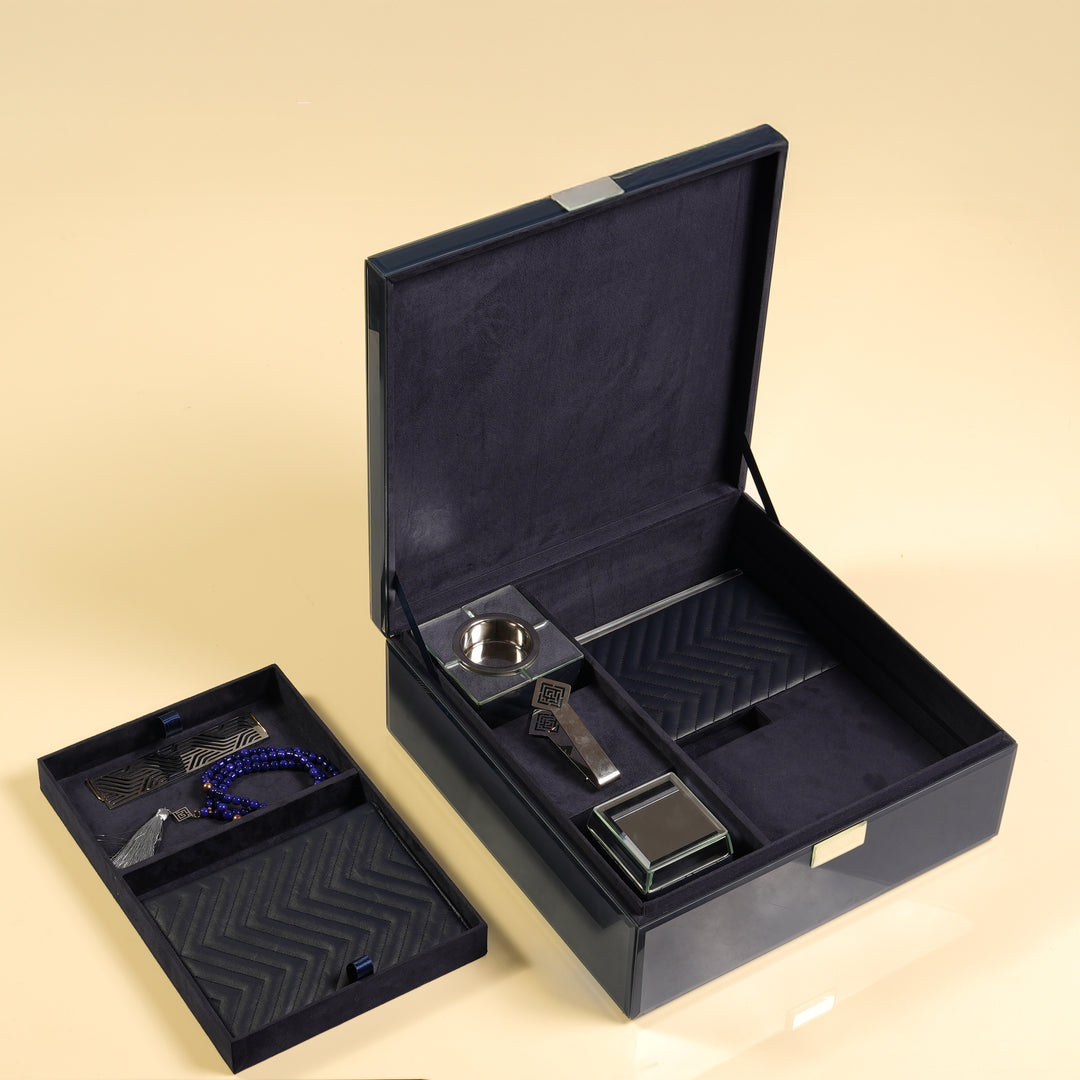When ritual becomes ritualistic, beauty restores meaning. This set is a quiet rebellion against the ordinary. A visual and tactile journey where every surface speaks, and every element is designed to be touched, held, and remembered. The soft quilting of the leatherette calls to the fingertips, while the cool sheen of layered glass catches the light like a still moment suspended in time. Nothing is accidental - each line, fold, and finish serves purpose and poetry. This is more than a Ramadan set; it’s an ensemble of presence and pause - balanced in form and meticulously aligned to the sacred rhythm of the season.